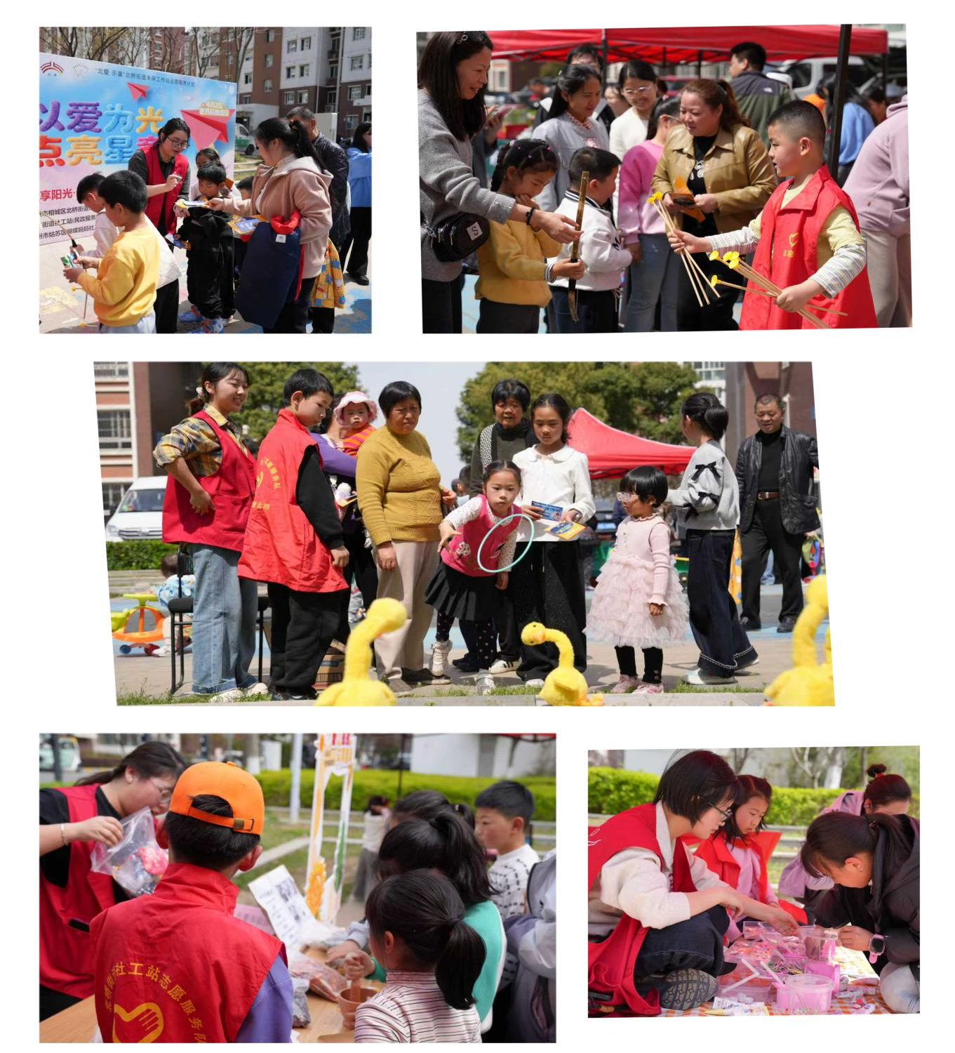 为迎接4月2日世界孤独症日的到来,普及孤独症儿童相关知识,凝聚社区力量关爱困境儿童,3月28日,北桥街道社工站(民政服务站)联合盛北社区在盛北花园六期下沉式广场开展“以爱为光·点亮星童”主题大型活动。活动以多形式摊位互动为载体,吸引了众多社区儿童及亲子家庭热情参与,让关爱与温暖在春日里悄然传递。