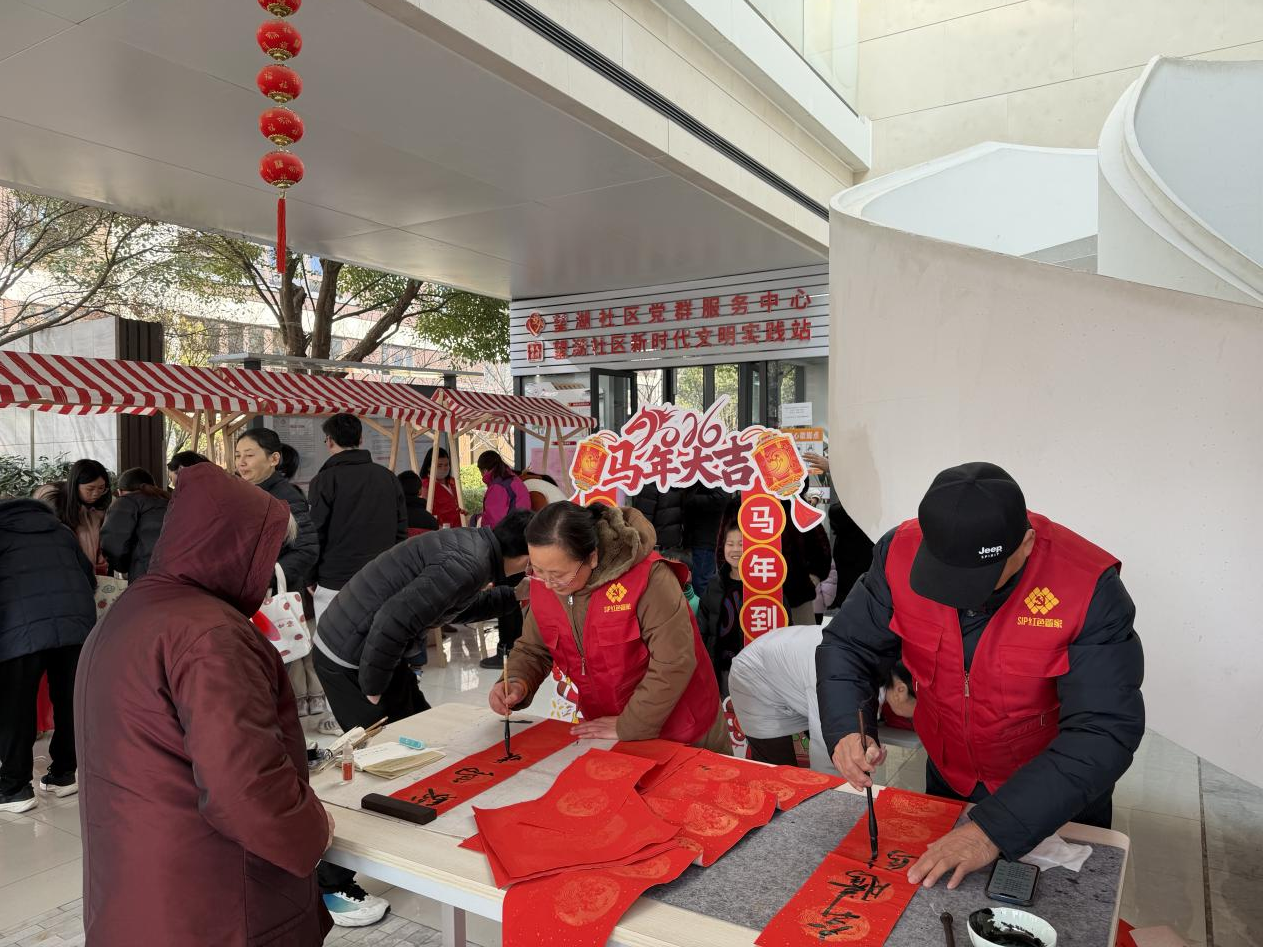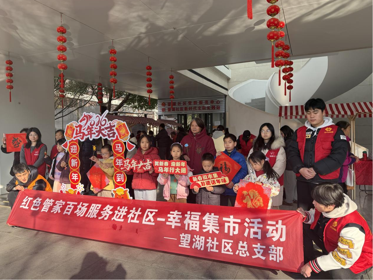 骏马迎春到,年味漫社区。随着2026马年新春的脚步日益临近,为让辖区居民在浓厚的年俗氛围中迎接新春,1月24日14:00,望湖社区在,举办“迎新春逛市集·望湖邻里欢乐荟”主题活动,活动融合便民服务、非遗体验与趣味互动三大核心板块,为社区居民送上了一场兼具烟火气、文化味与马年特色的新春盛宴。