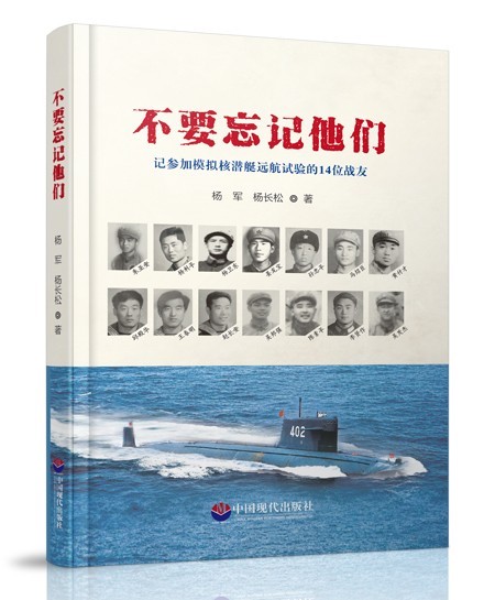 由海军装备部驻沈阳军事代表局原局长杨长松和海军潜艇学院基础部原主任杨军两位同志合著的纪实性史料作品《不要忘记他们》近日由中国现代出版社正式出版。这部10多万字的纪实作品,真实地记录了49年前14名来自常规潜艇部队的年轻士兵,奉命执行了一项挑战人体极限的秘密任务:模拟120天核潜艇远航人员耐受力试验。14名战士不顾个人安危,以身许国,用自己的身体做试验,为确定中国核潜艇最大远航能力提供了宝贵的科学依据。书中详细记录了这14位参试战士当时的参试过程以及参试结束后至目前的生活现状。这件在海军核潜艇发展史上的大事,在过去的近半个世纪里,因各种原因未被引起人们的注意,今天由两位作者还原这段历史,以纪实的笔法,真实地呈现在了世人面前。